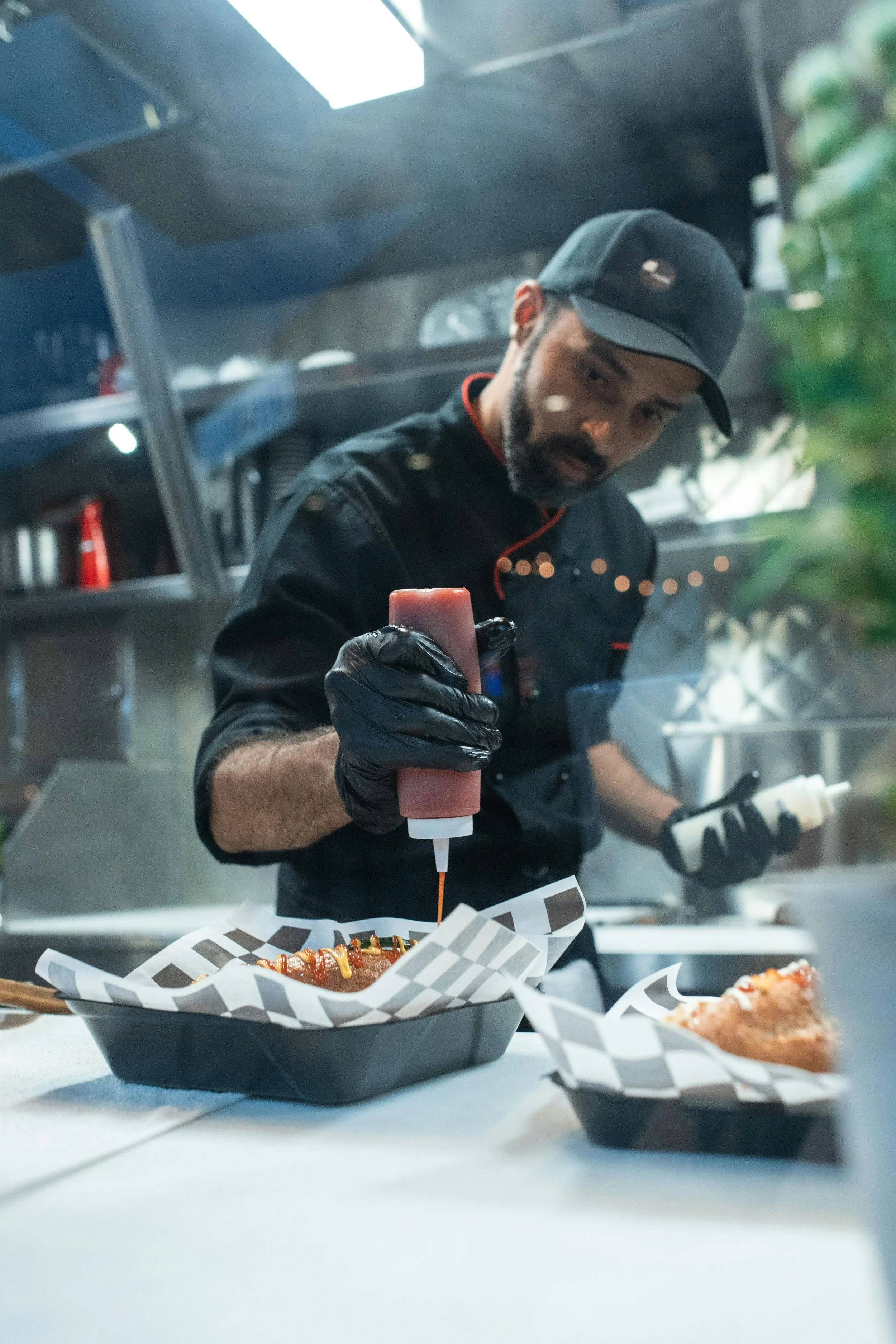 Our hot kitchen truck is equipped with a full vent hood, stove, oven, and fryer — allowing us to cook live on site and serve everything from tacos and comfort classics to elevated event menus.
